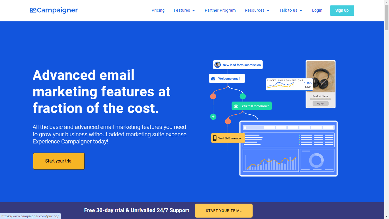 The email marketing process on Campaigner works like this: the customer performs a trigger action, e.g. clicking the “subscribe” button on your website or at the bottom of your blog. Campaigner adds that email address to your contacts list.