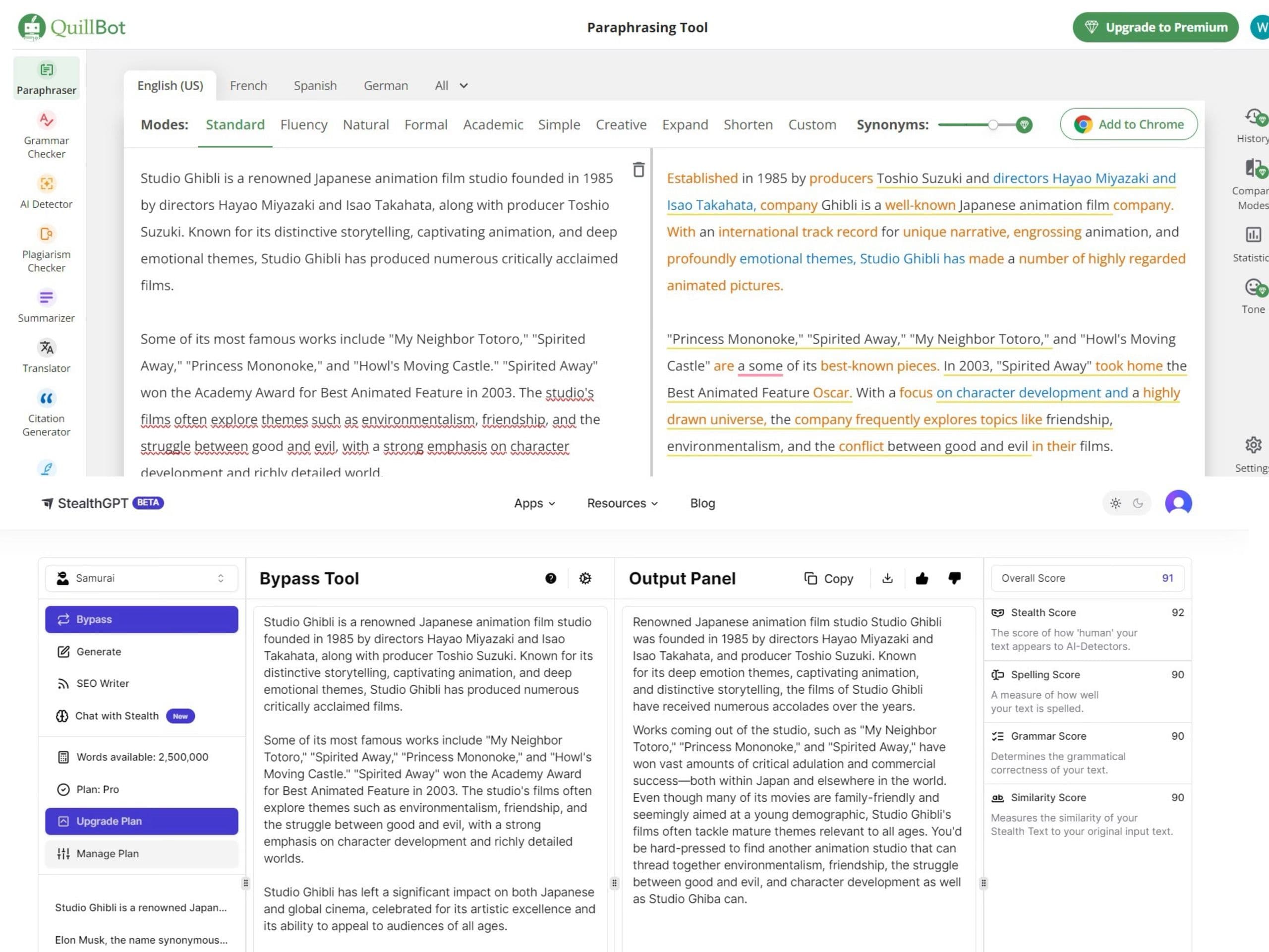 Quillbot vs. StealthGPT: Checking AI Bypassing Capabilities