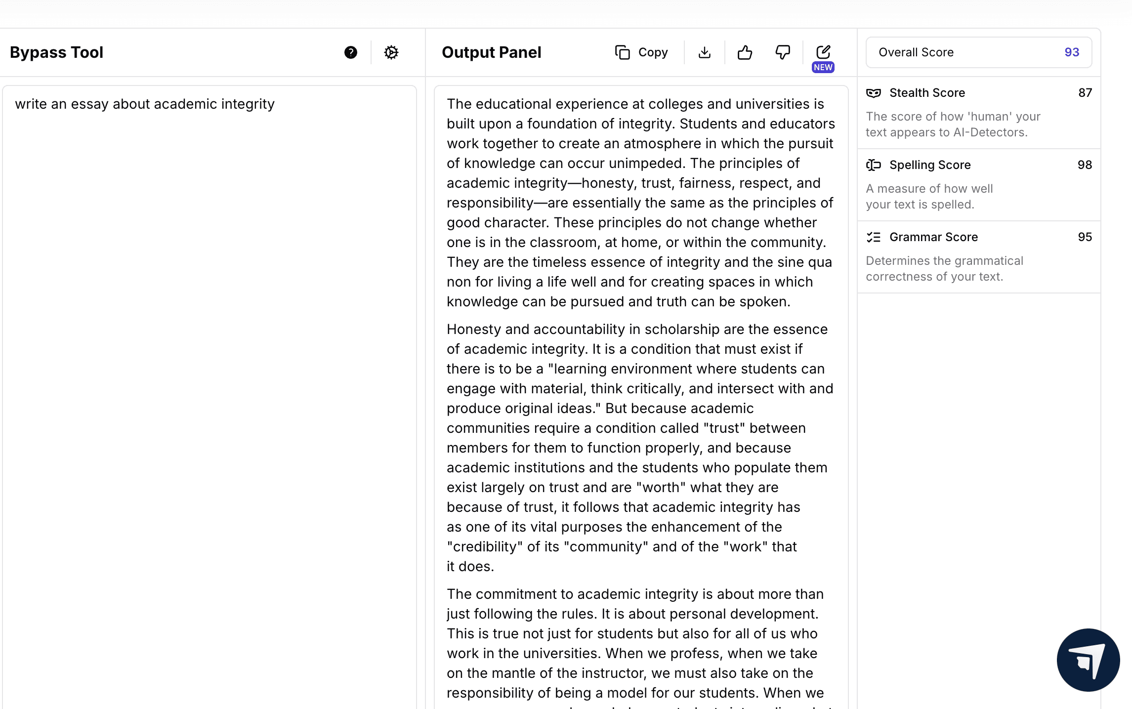 Now, lets have Stealth Writer generate a fresh new essay without ChatGPT’s involvement at all. Here's the essay: