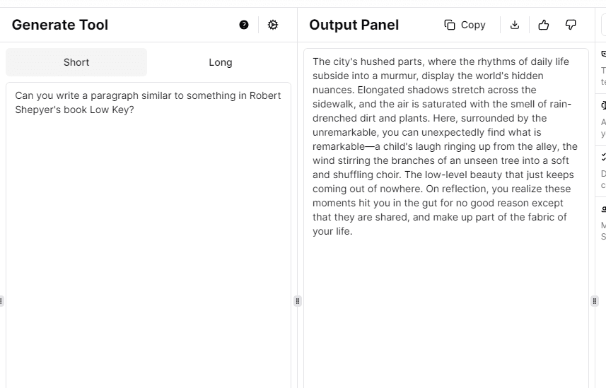 Before I get into actually using Stealth Writer, I want to touch upon the ethics involved. We often encounter these talking points in this line of work, however, rarely does an AI company employee also moonlight as a novelist and screenwriter. As such, let me make it clear I see no compromise in values or ethics present. Attempts to discredit usage of AI to write are in bad faith.