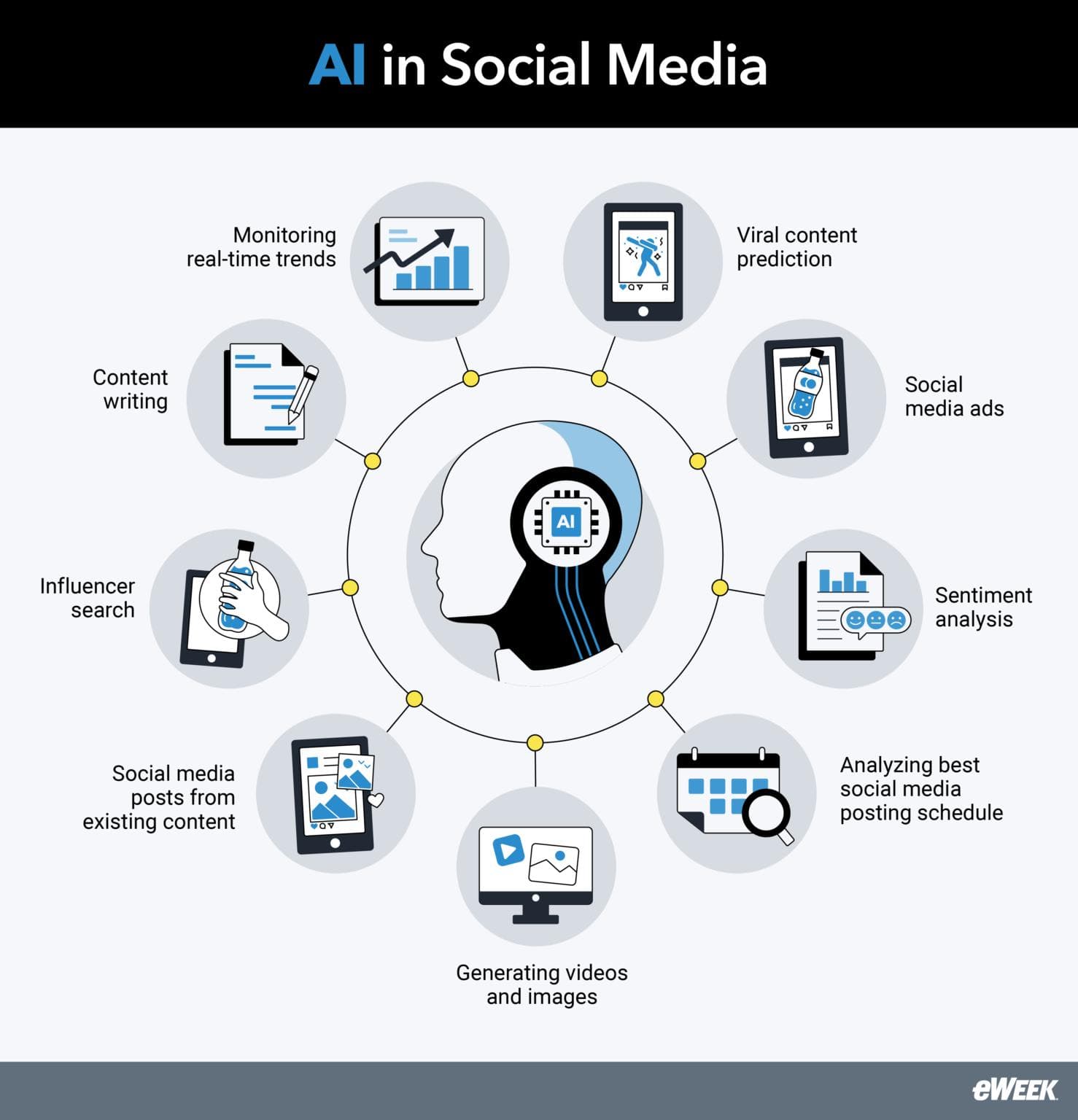 These Forbes and Eweek articles detail all the ways you can leverage AI writing to your advantage on social media from strategy, to brainstorming ideas for posts, to writing the actually verbiage.