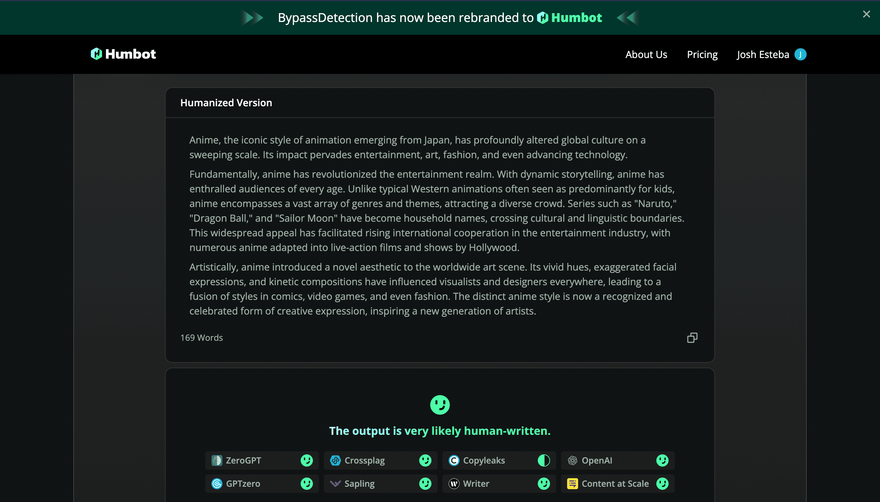 Humbot claims to be the ultimate solution to bypass AI detection. Humbot can easily humanize AI text into authentic and original content undetectable by most detectors. Humbot claims to be a trustworthy AI humanizer to bypass AI detection capable of being undetectable by most detectors such as: GPTZero, Content at Scale, Winston AI, Copyleaks, TurnItIn, ZeroGPT, and OpenAI's Text Classifier. Let's put it to the test to see whether or not their claims are true.