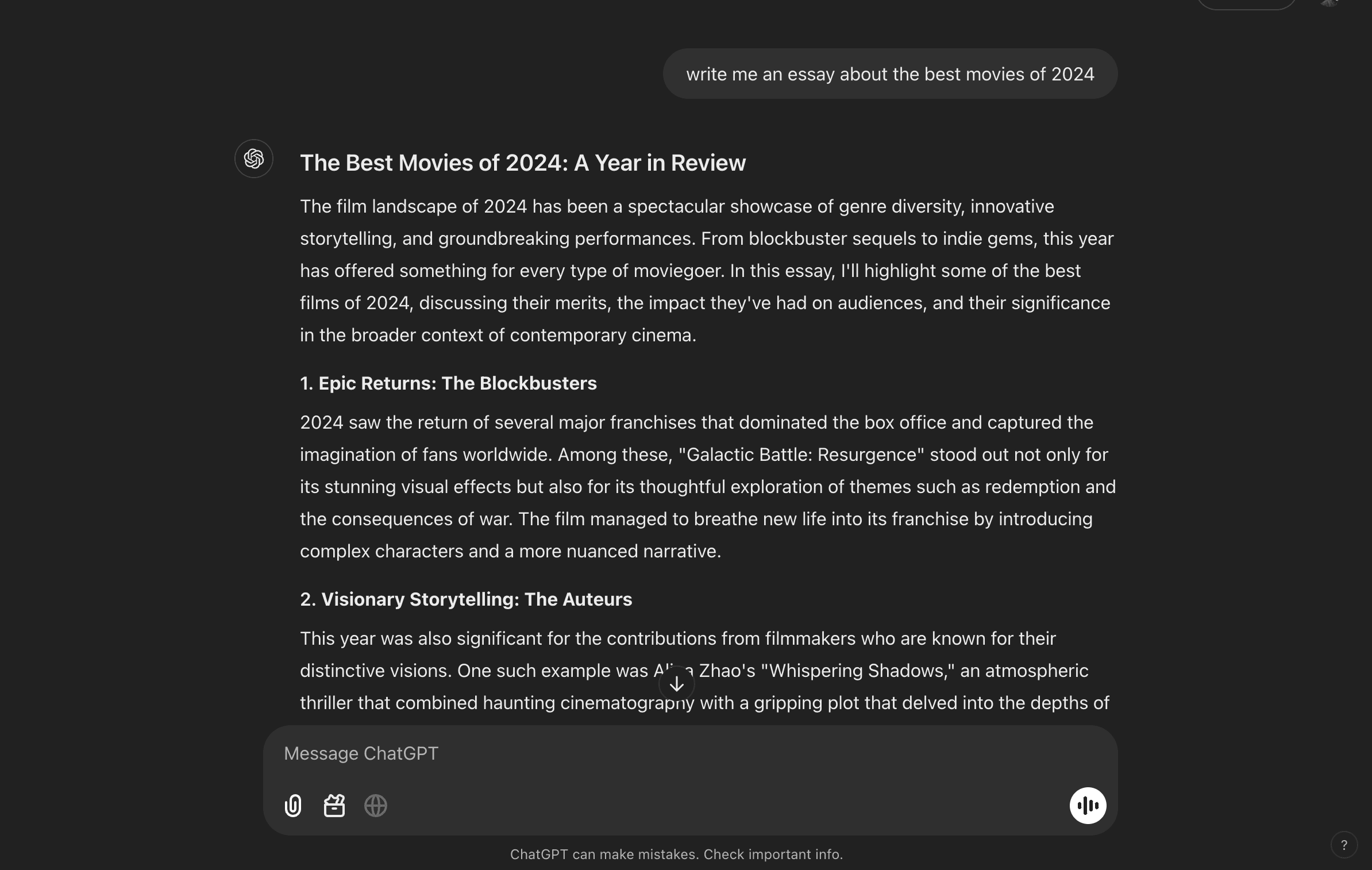 Lets see how Rewritify’s undetectable text looks. First by generating an AI essay with ChatGPT to put through their AI humanizer. Here’s our ChatGPT essay: