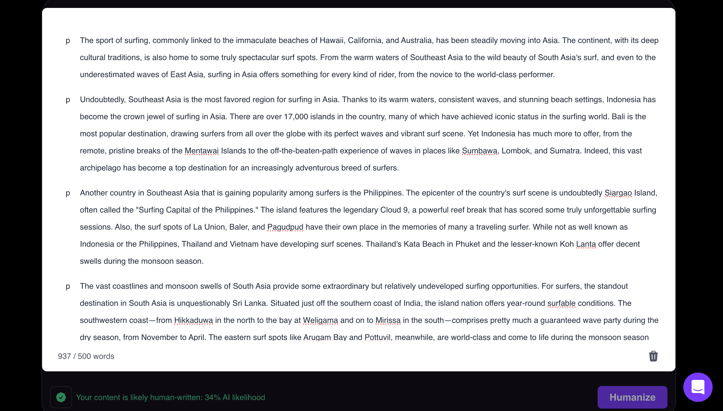 Now we need to take that article and paste it into SurferSEO's AI detector and see what happens.