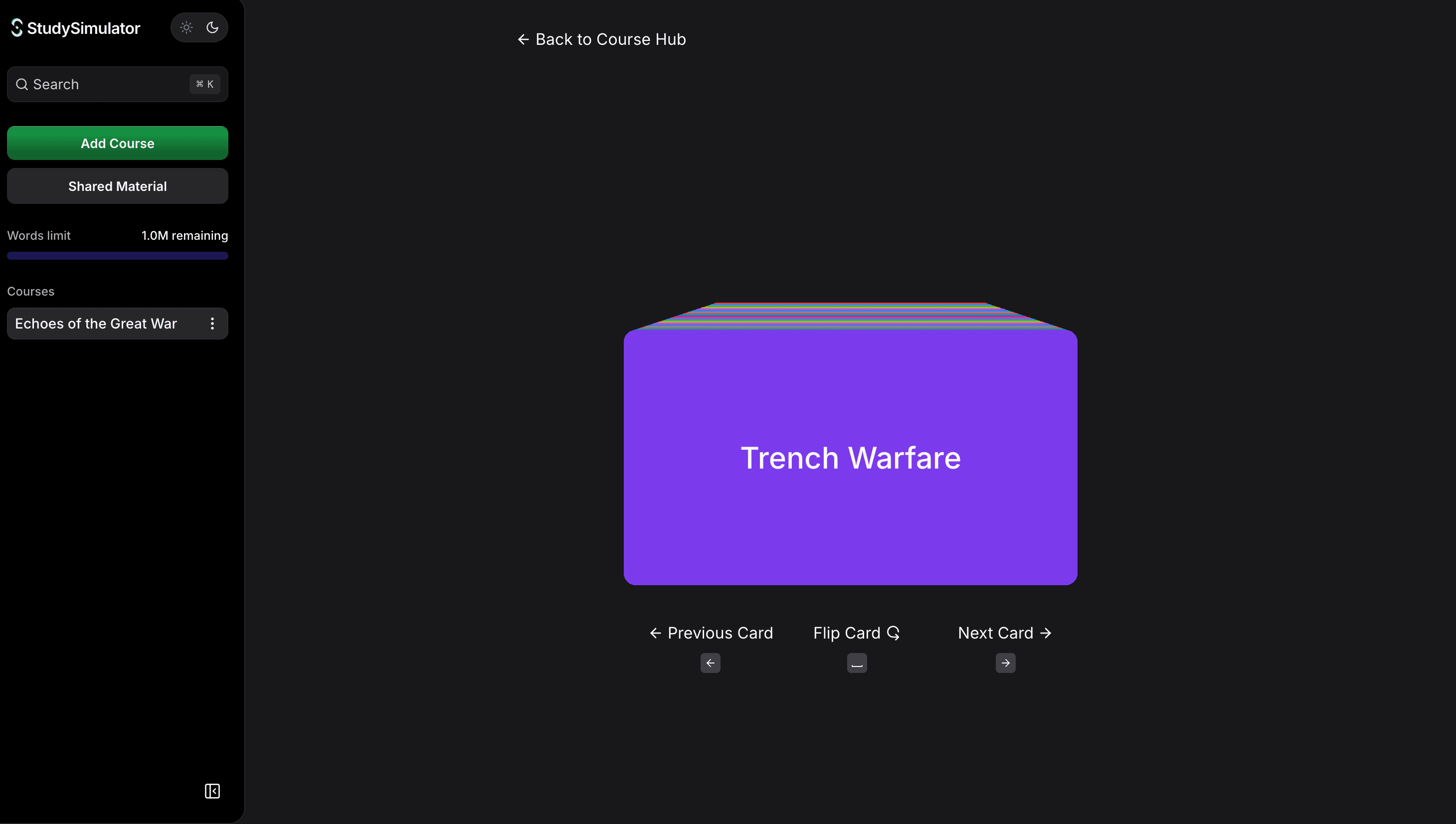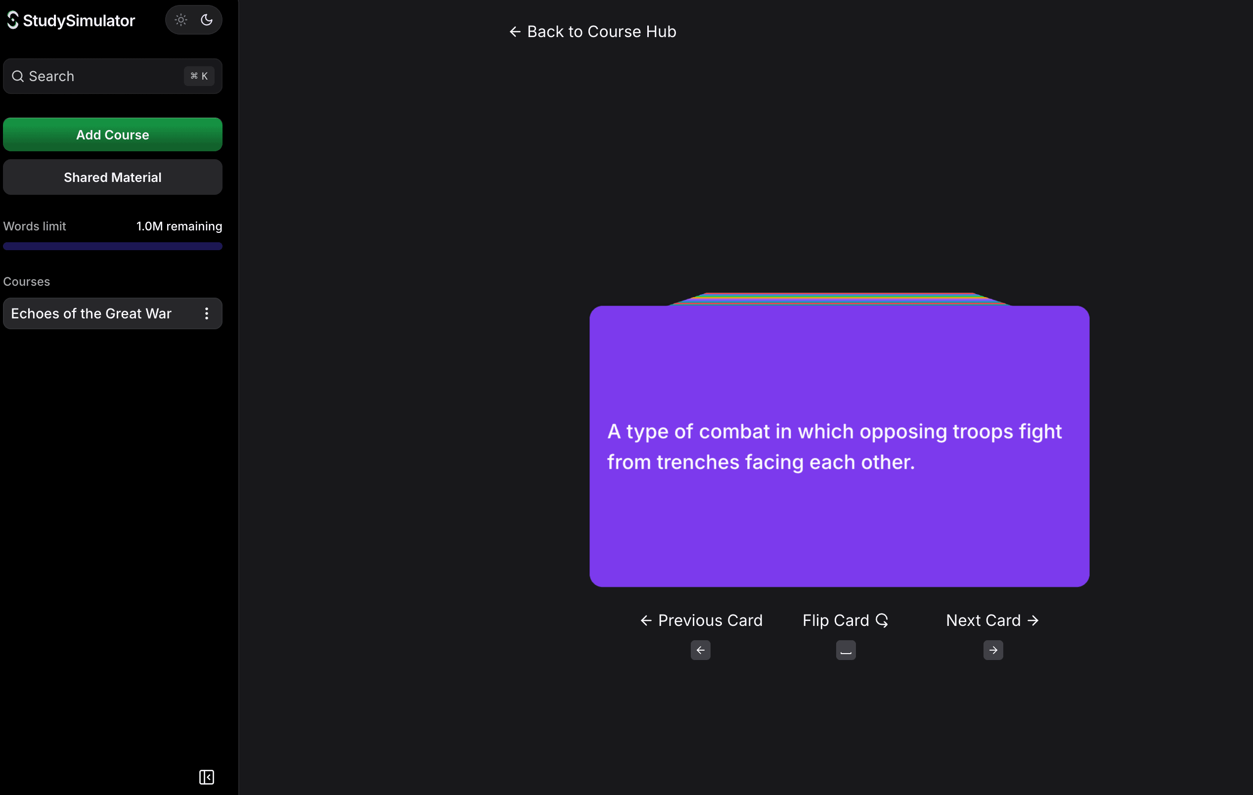 Only The Study Simulator allows you to access a powerful enough AI engine to create study flashcards that ensure retention of any information, all at no cost to users. If you want to access the full scope of The Study Simulator’s toolkit, our pricing options are tailored to users that can leverage this software for basic studying, deep learning, or even teaching.