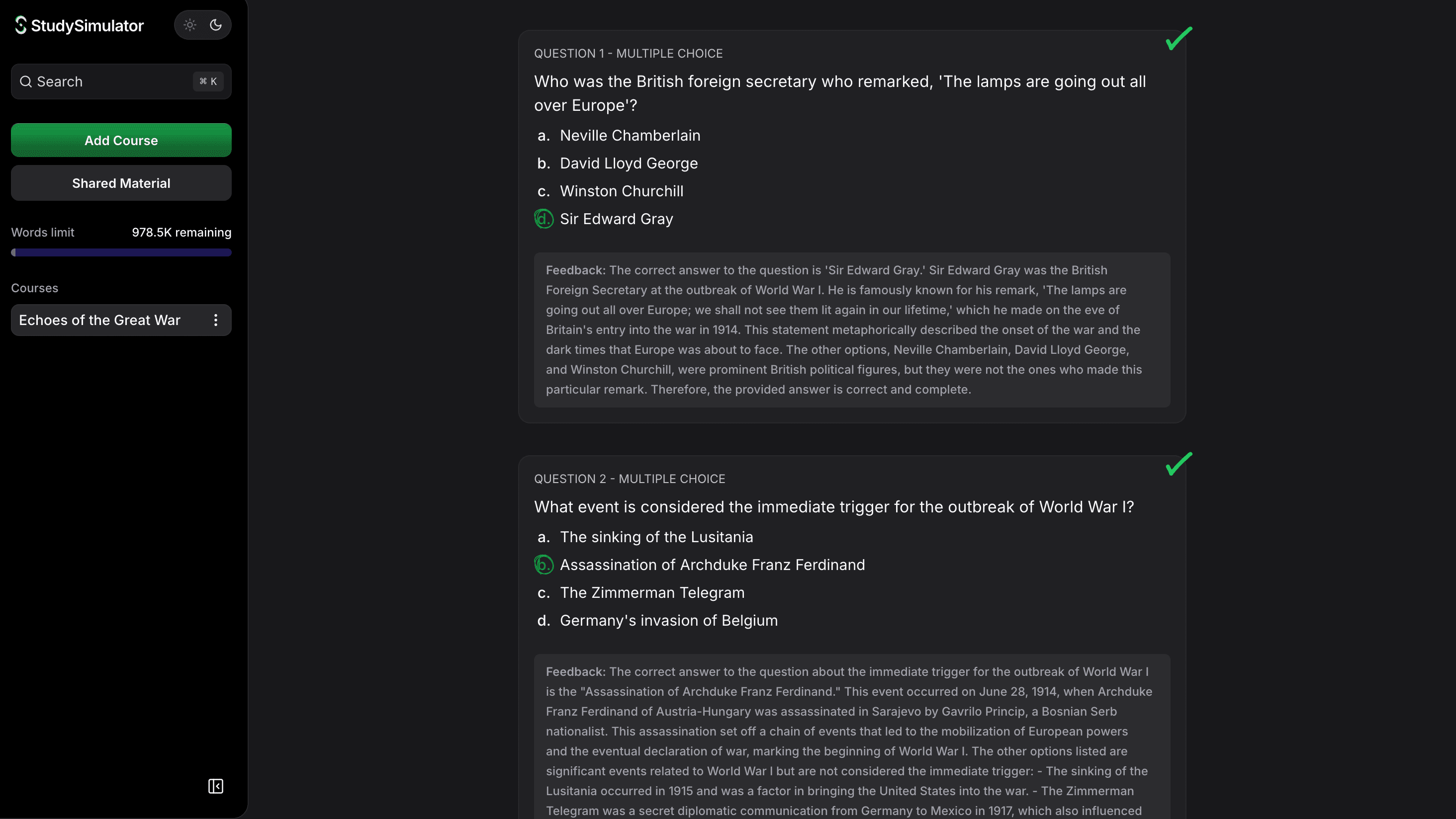 Beyond the free flashcard maker, The Study Simulator's two other features broaden any users ability to both learn and teach with this powerful AI engine.