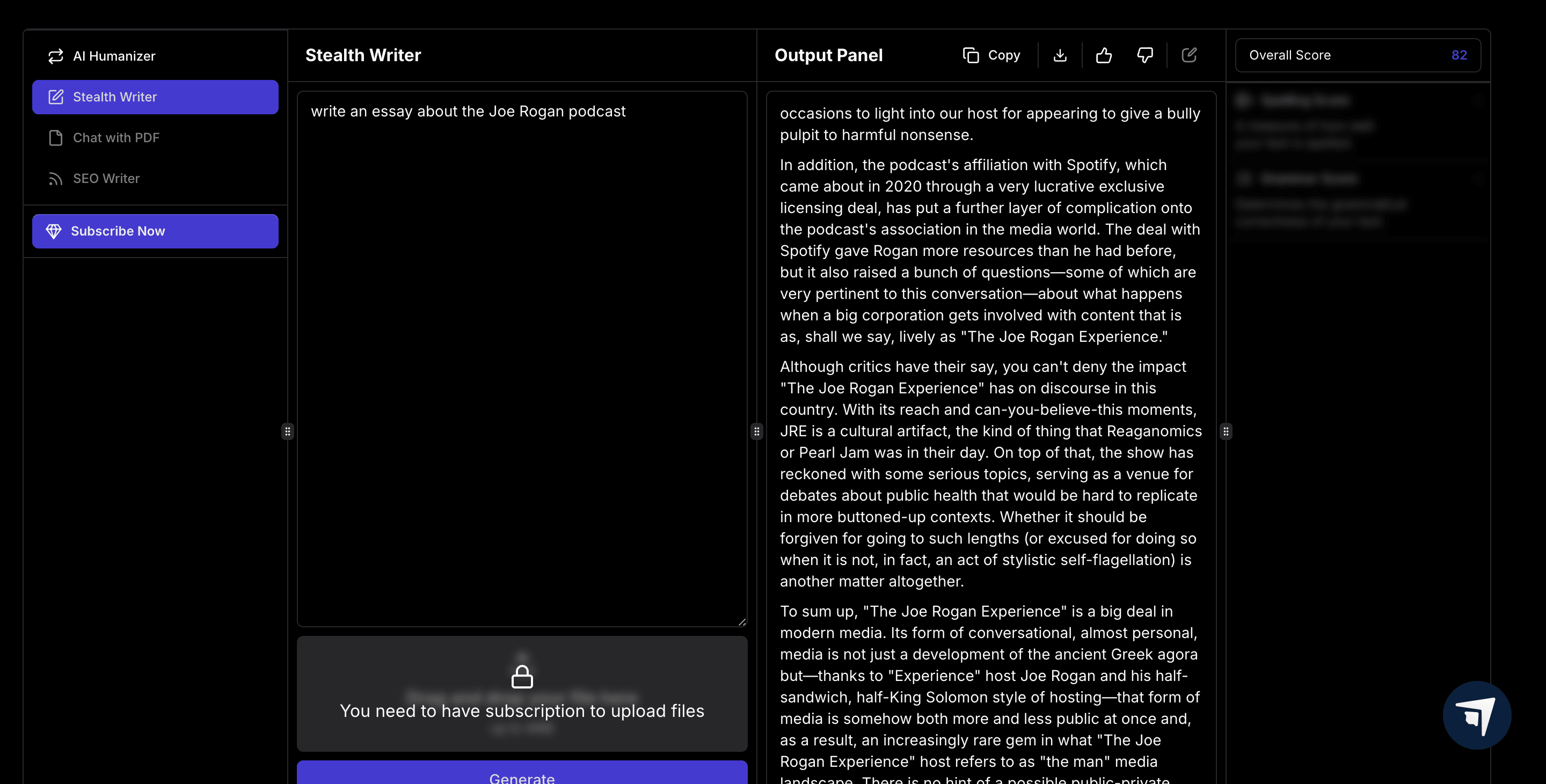 Your inputs have a 350 count word limit but your outputs have a unlimited word count. On top of that, you have unlimited uses of Stealth Writer in the free version of StealthGPT until you feel like upgrading your content creation game another notch further.