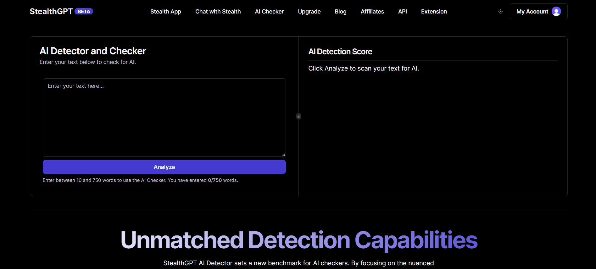 With StealthGPT, you can leverage the AI checker tool to scan your text and see whether your content is getting flagged as AI-generated or not. All you need to do is just simply copy and paste the content inside the AI checker box and click on the “analyze.” button. After a few seconds, StealthGPT will work through the content and let you know the percentage. Our AI checker can detect any content generated by AI writing tools built on GPT-3 and GPT- 4 models, which will offer you unparalleled detection accuracy.