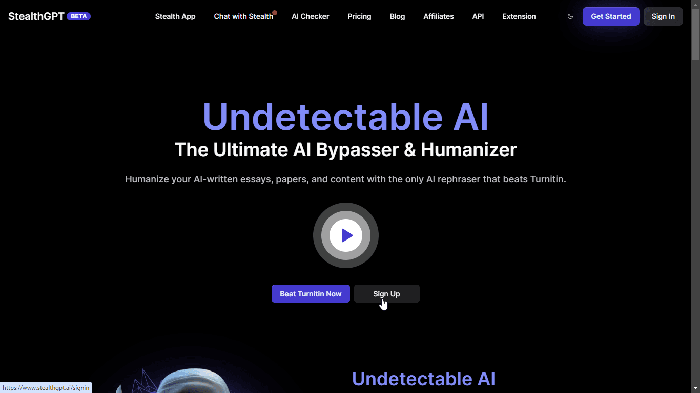 StealthGPT is the undetectable AI software that's capable of rephrasing content, generating undetectable text, or humanizing any content that is generated by AI in a double click. Its primary goal is to work around AI-written content so that even the best AI detection tools, which is Turnitin, will be unable to detect that the content was generated by artificial intelligence.