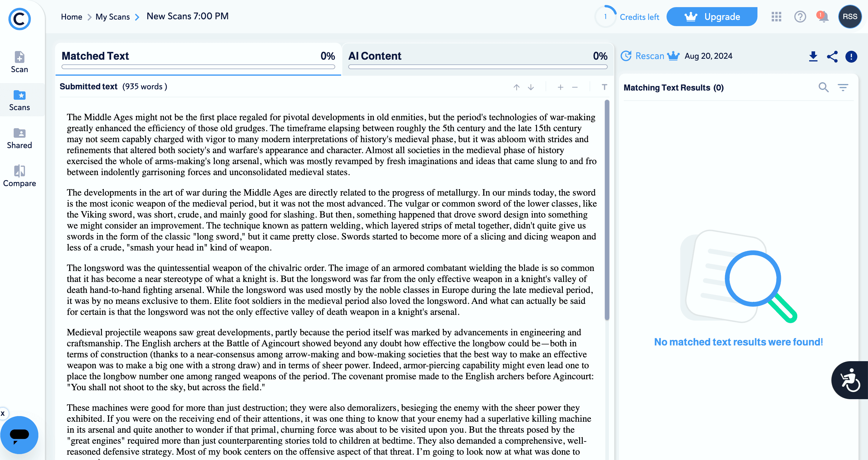 This is what our essay looks like now if it were written by neurotic New York filmmaker, Woody Allen. Can Woody bypass Copyleaks though?