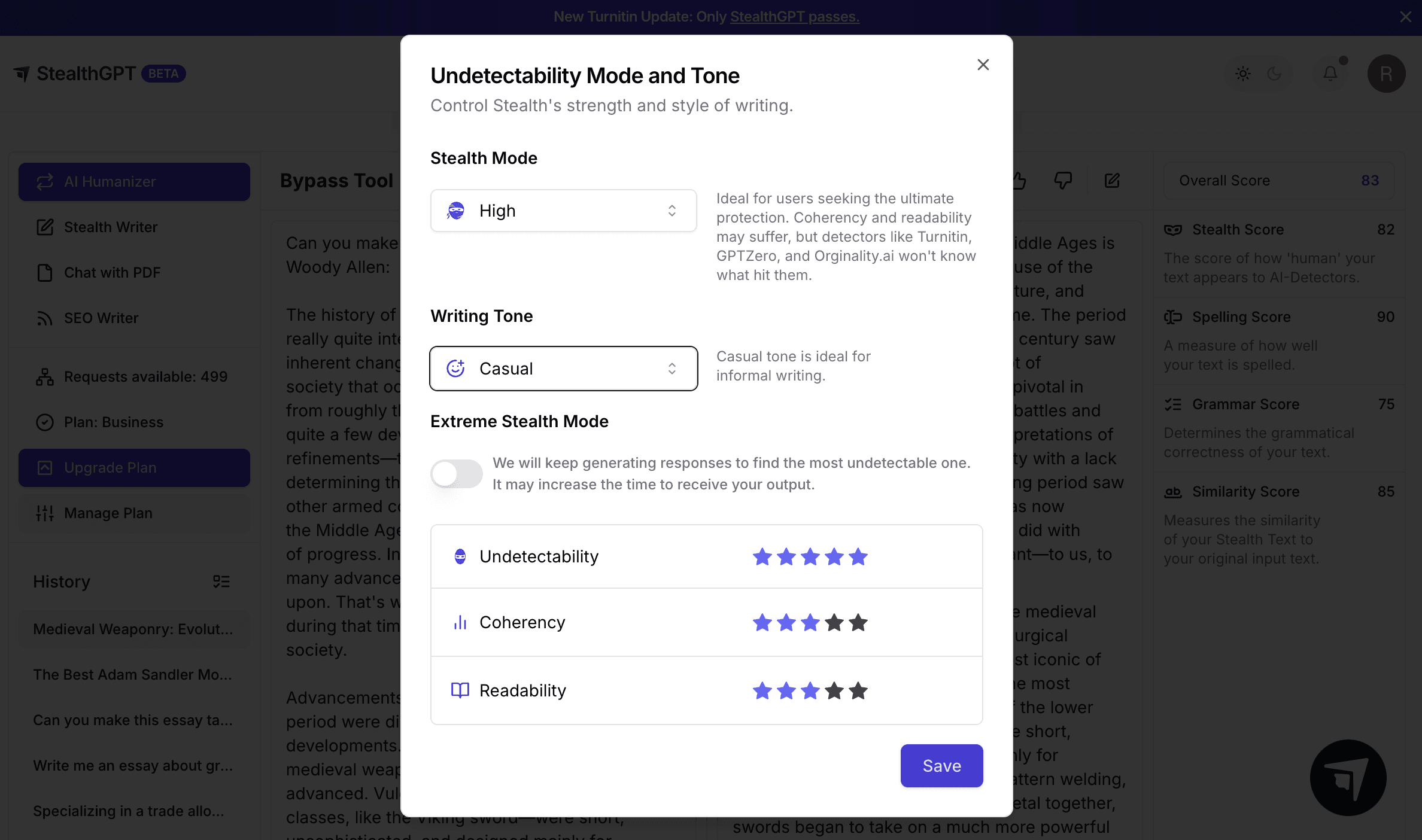 If you want to learn more about how to boost readability with StealthGPT check out our guide.