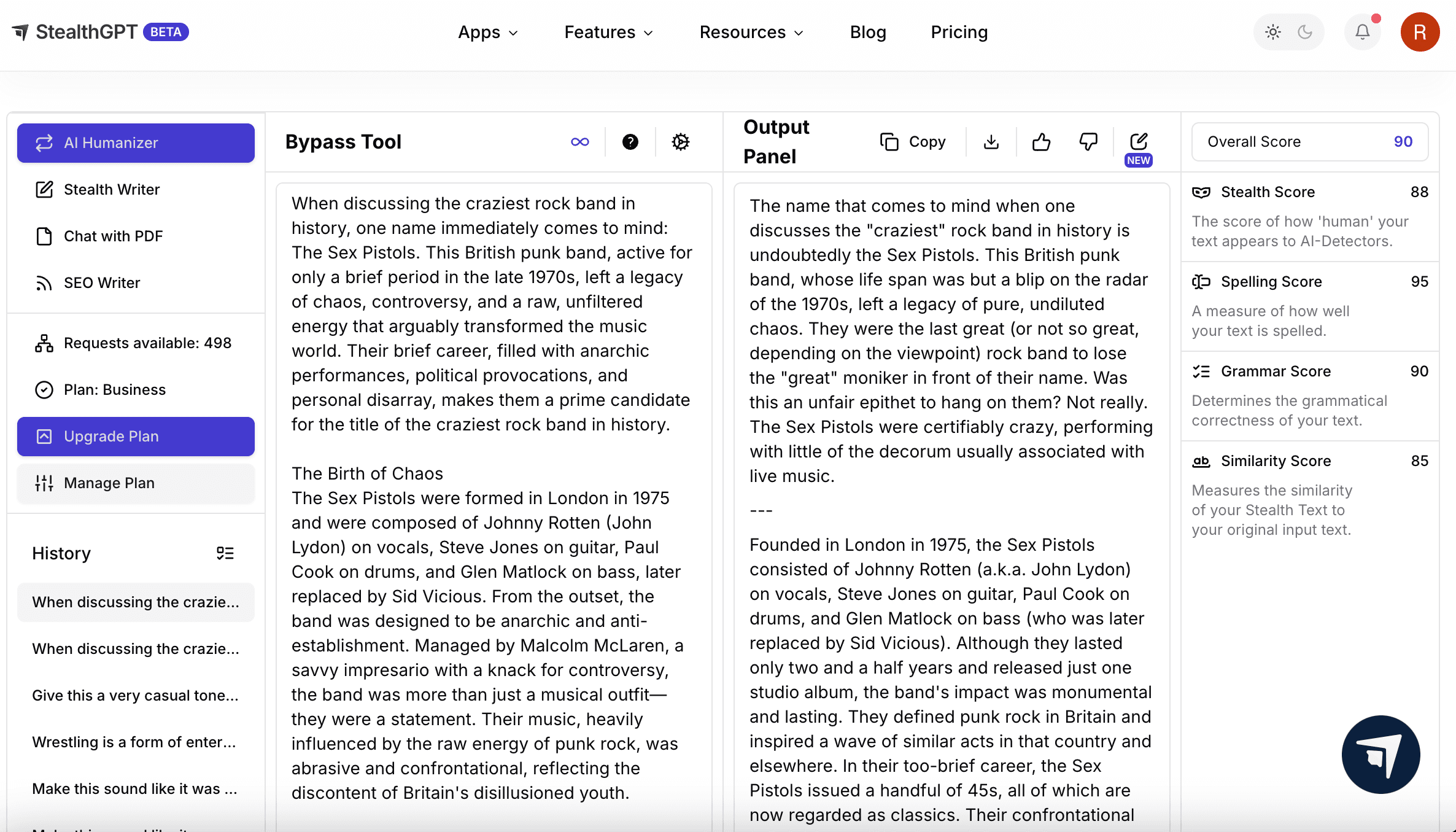 Personalization with keywords: You can tell StealthGPT to input keywords that sound like you or the demographic your targeting and it’ll weave those words in to futher humanize your text.