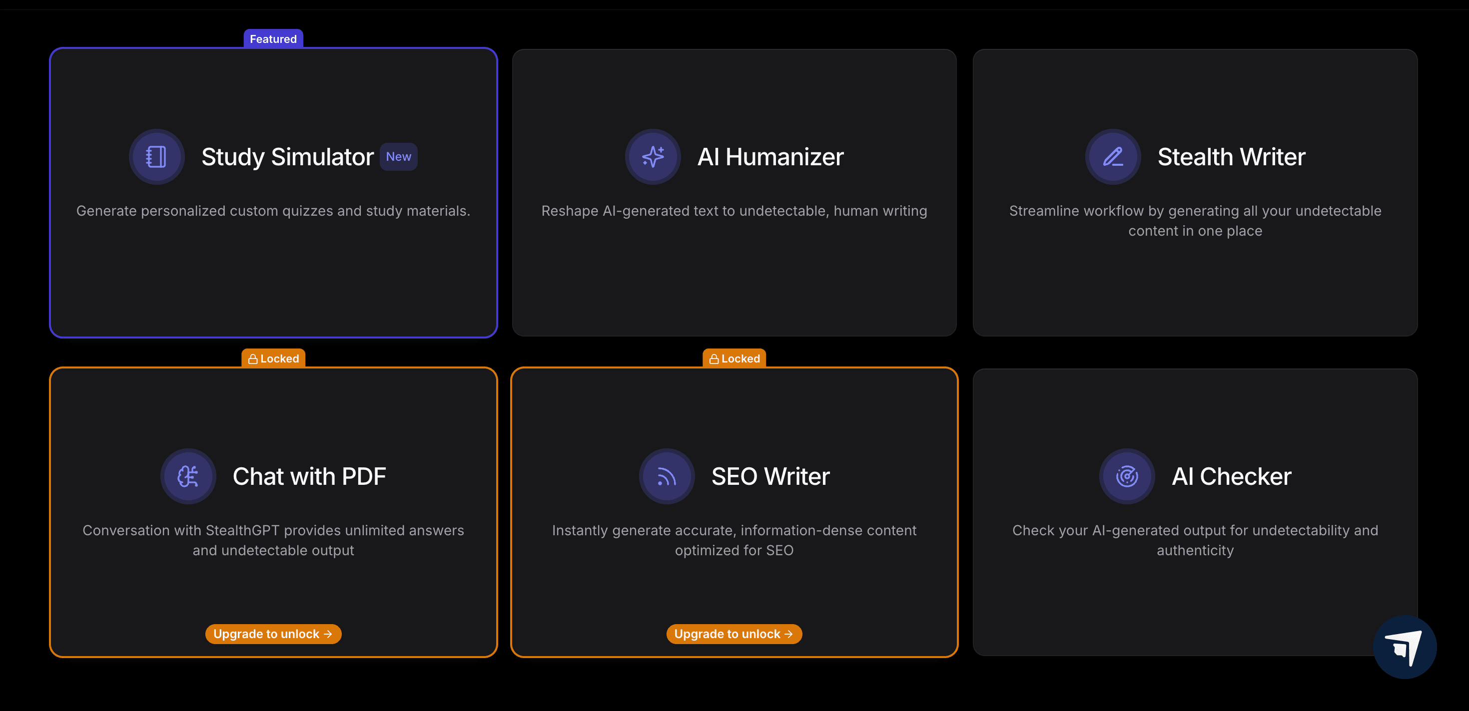 These features include our AI humanizer, Stealthwriter, our AI checker, and the brand new Study Simulator, the greatest study hack available online.