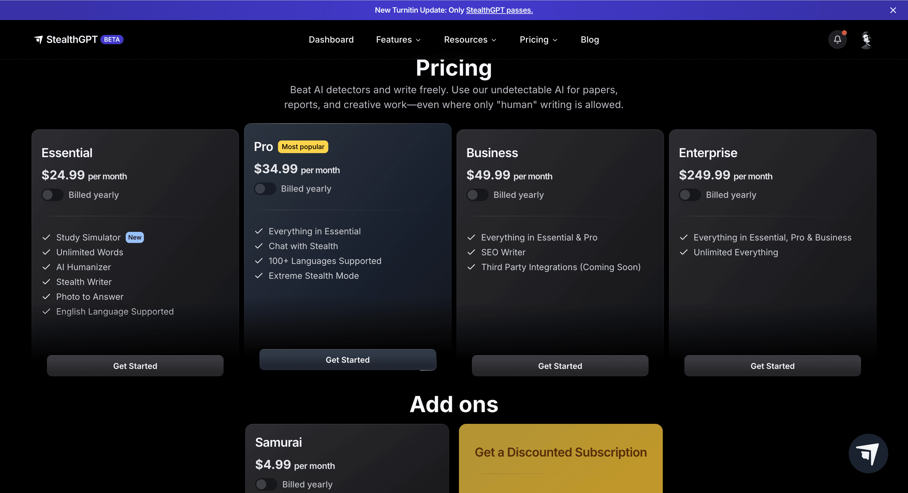 StealthGPT is not like other AI detectors. With inclusive pricing plans that ensure anyone that needs to get their hands on undetectable AI has the chance, Stealth AI has changed the lives of so many people by unlocking their content creation potential so they can bypass AI detection systems of any kind.