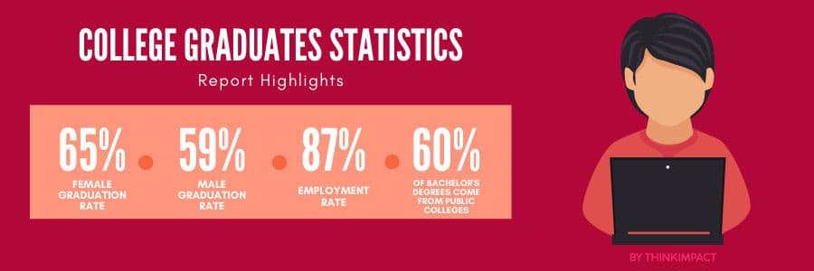 The image above breaks down the graduation rate further by sex, employment rate, and type of institution.