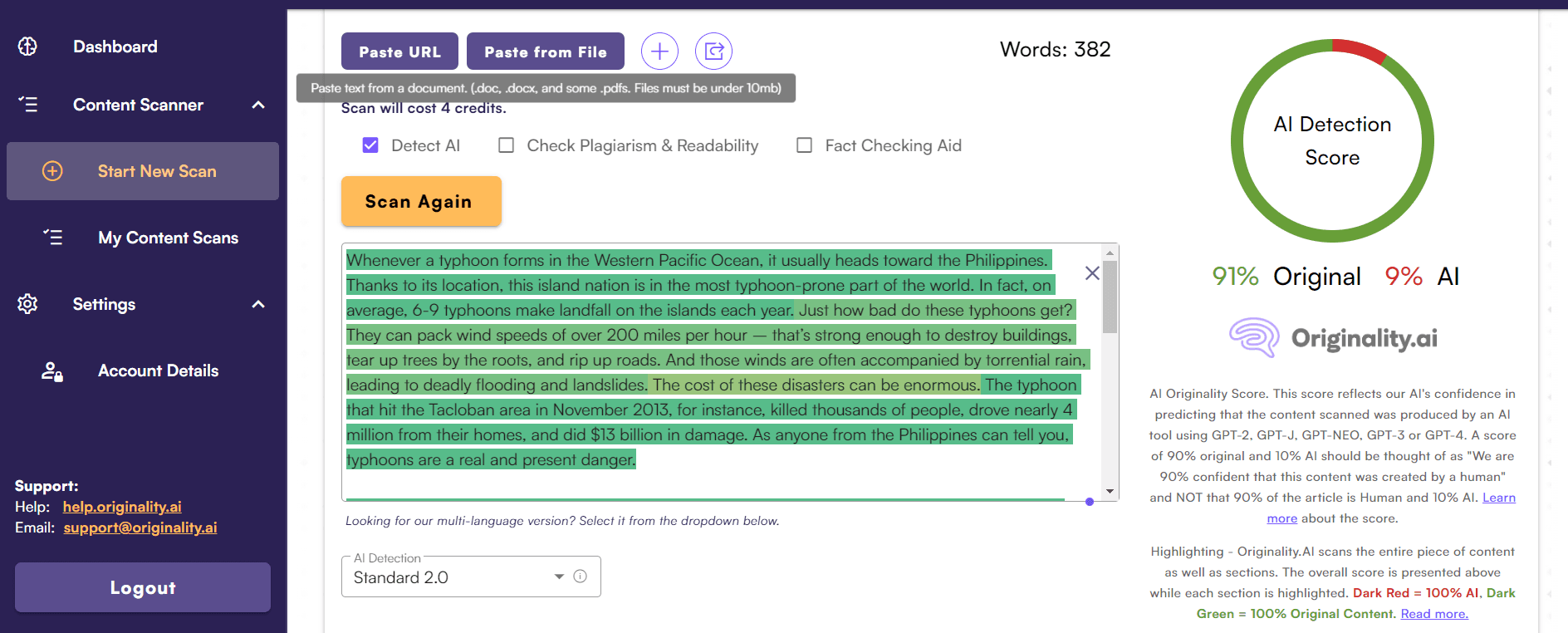 When the AI-written content has been humanized, we just run the new version through a detection tool to see how well it works. In this case, we chose to put it through Originality AI- one of the toughest AI checkers to bypass in the market. Feel free to check out the screenshot below.