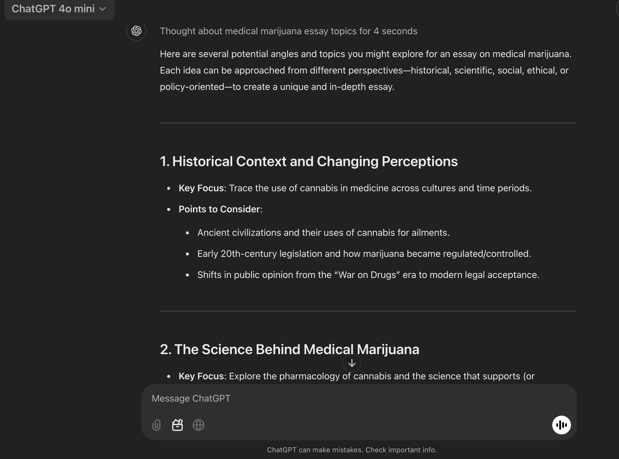 Professional essays need to feature strong thesis statements. The argument you’re presenting in the thesis should be fleshed out by breaking down the mains point of your argument into the body of the essay. You can break any argument down into segments using AI by simply asking it to separate any given thesis into numerous points.