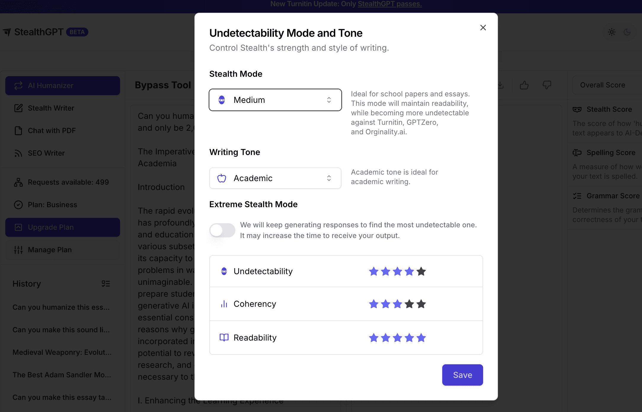 That tool is StealthGPT's Stealth Writer and I’m going to show you how to leverage the strongest undetectable AI system to make your academic writing the best it can possibly be. First though, let's begin with basic essay generation and revision with artificial intelligence.