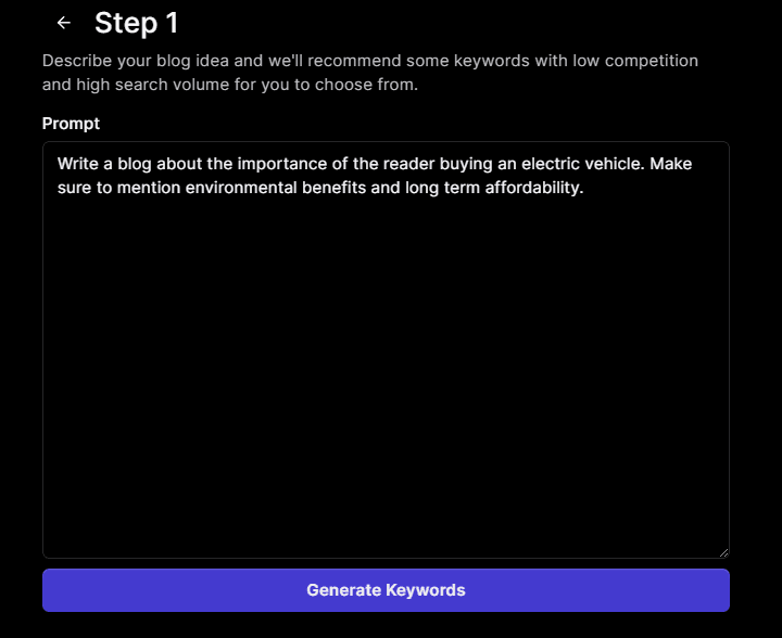 Tell SEO Writer in as much detail as you want what exactly your blog is going to be about. What information you want covered. And how to make it all fit together into a coherent narrative.