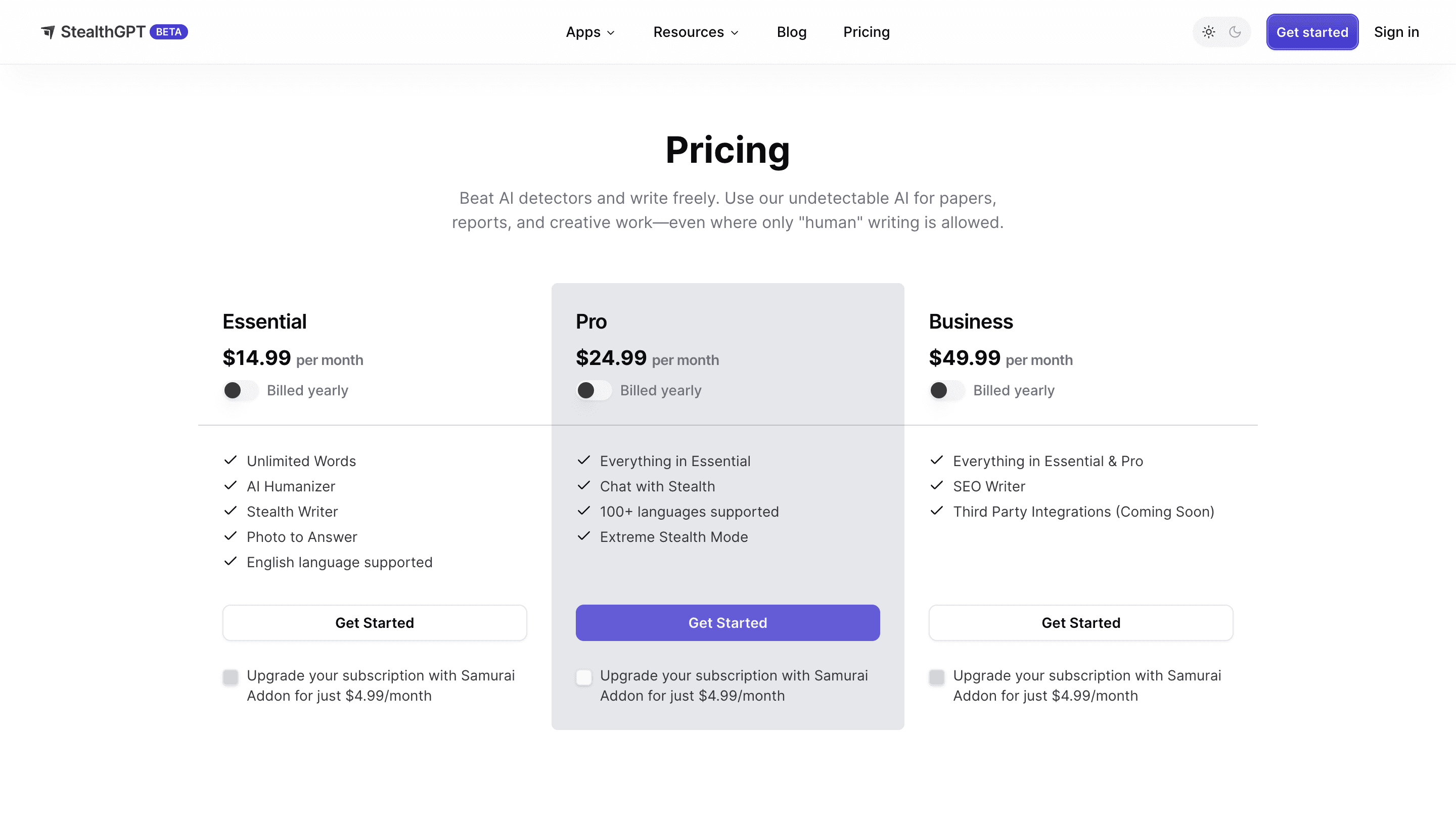 That’s exactly what SEO Writer does for you. It takes information from keyword databases and StealthGPT’s powerful undetectable writing engine to produce blogs that are high in readability, keyword density, and text which is completely undetectable to all major AI detection services which are utilized by search engines and websites to crack down on AI generated content.