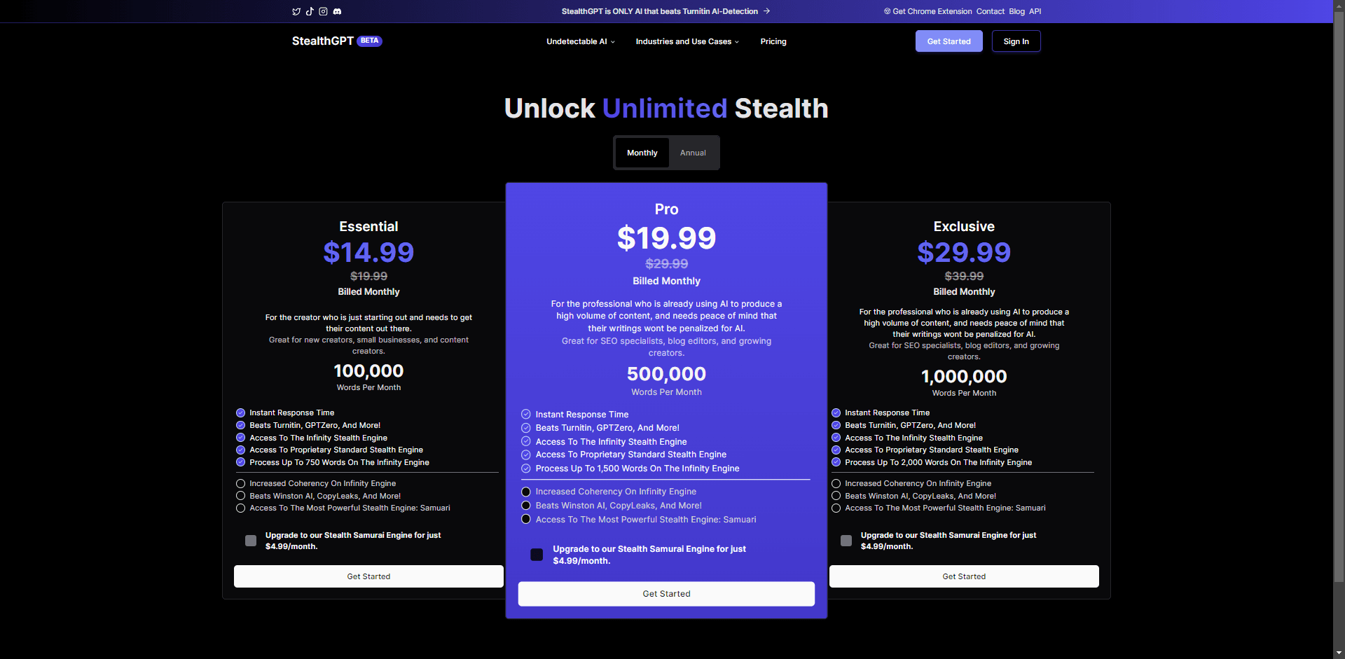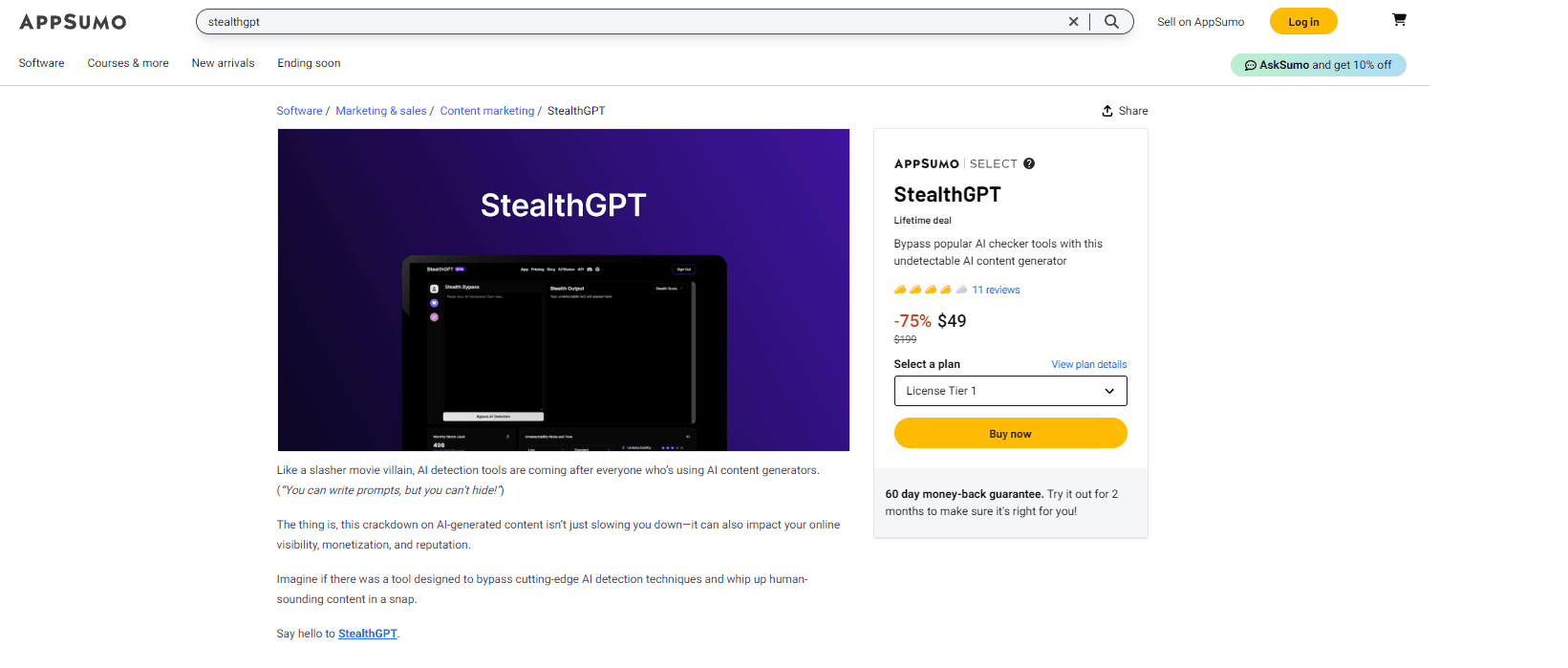Did you know you can get StealthGPT for a lifetime right now for as little as $50? In case you have not heard we partnered up with AppSumo to offer several different StealthGPT packages that last a lifetime. That's right, for a lifetime. This is perfect for power users or people who can see themselves needed Undetectable AI for many years to come.