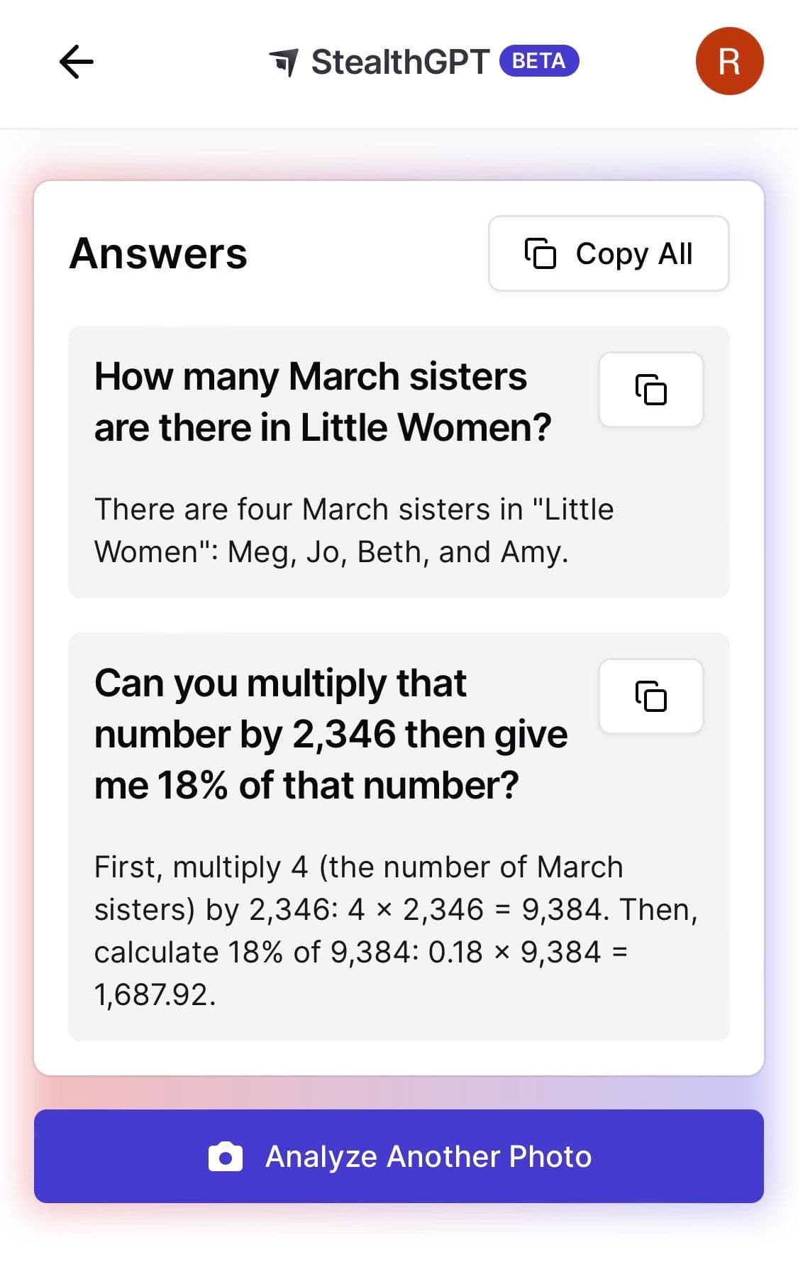 Maybe you’ve forgotten the other features that accompany Photo to Answer with your StealthGPT subscription. For your reading pleasure, they include: