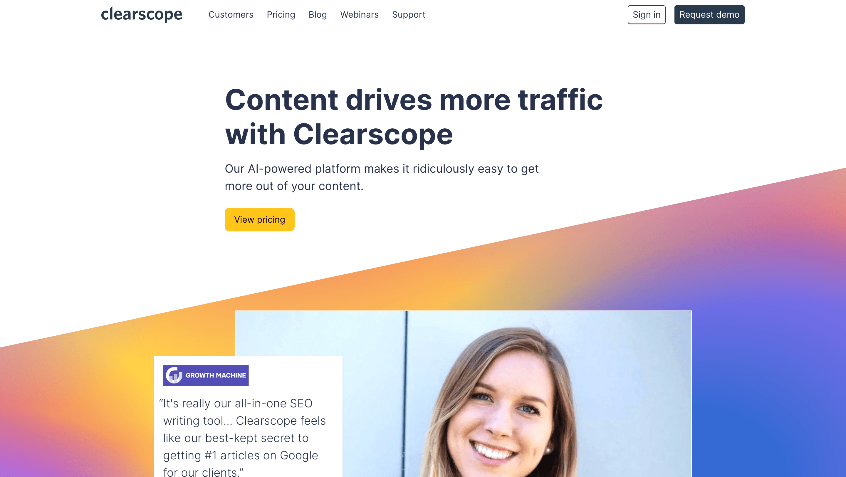 Clearscope is an AI-powered platform to make more out of your content. Specializing in SEO market research and driving traffic to your content.
