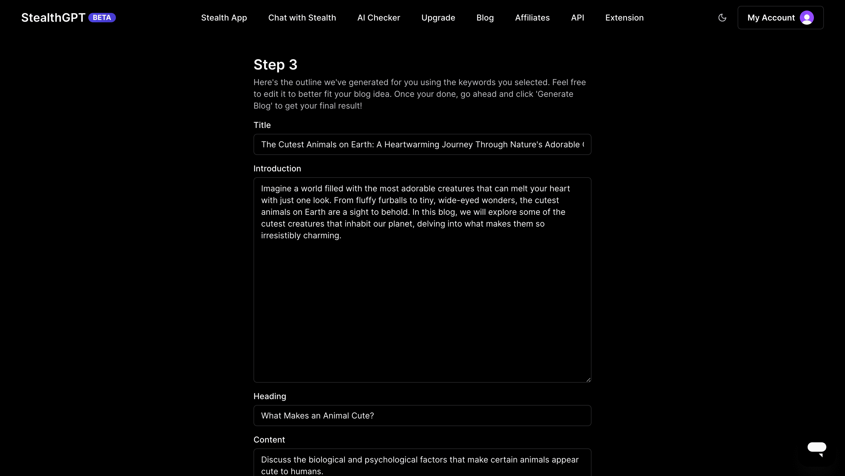 Here's an example of what StealthGPT's SEO writer blog can look like. Here is how you can do the same.