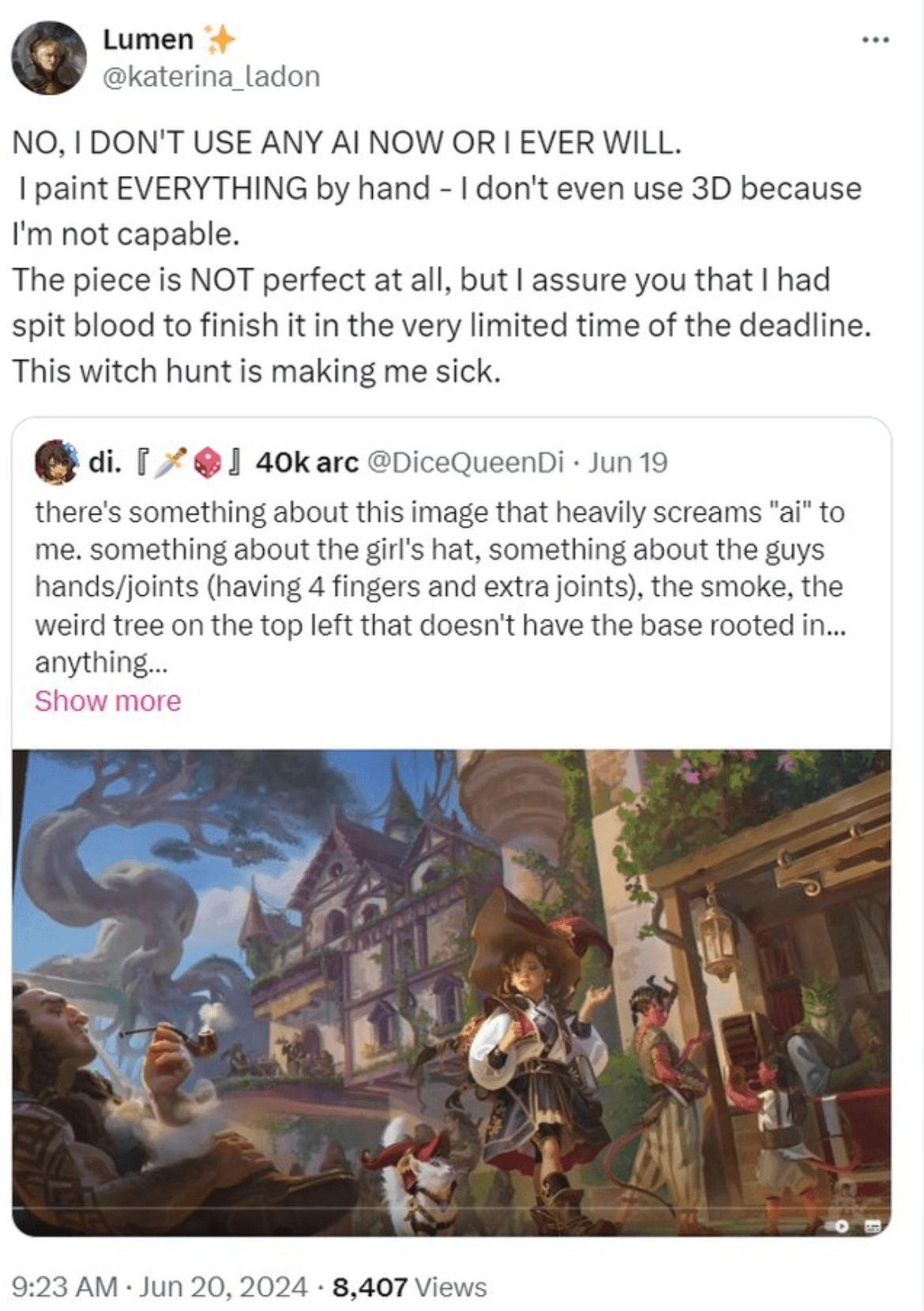 Here’s one example below of a painter that got accused of using AI wrongfully:
