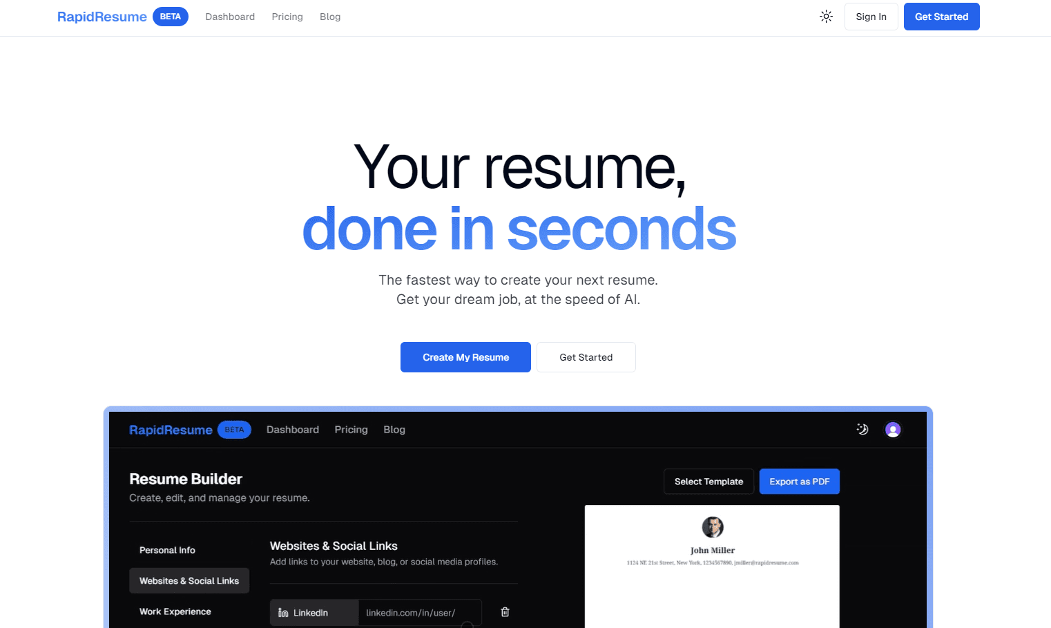 Smart Formatting for a Great Look: A good-looking resume can grab attention fast. Rapid Resume uses clever formatting tools to make your resume not just look better but also meet professional standards. With the right fonts and layout, your resume will look polished and professional.