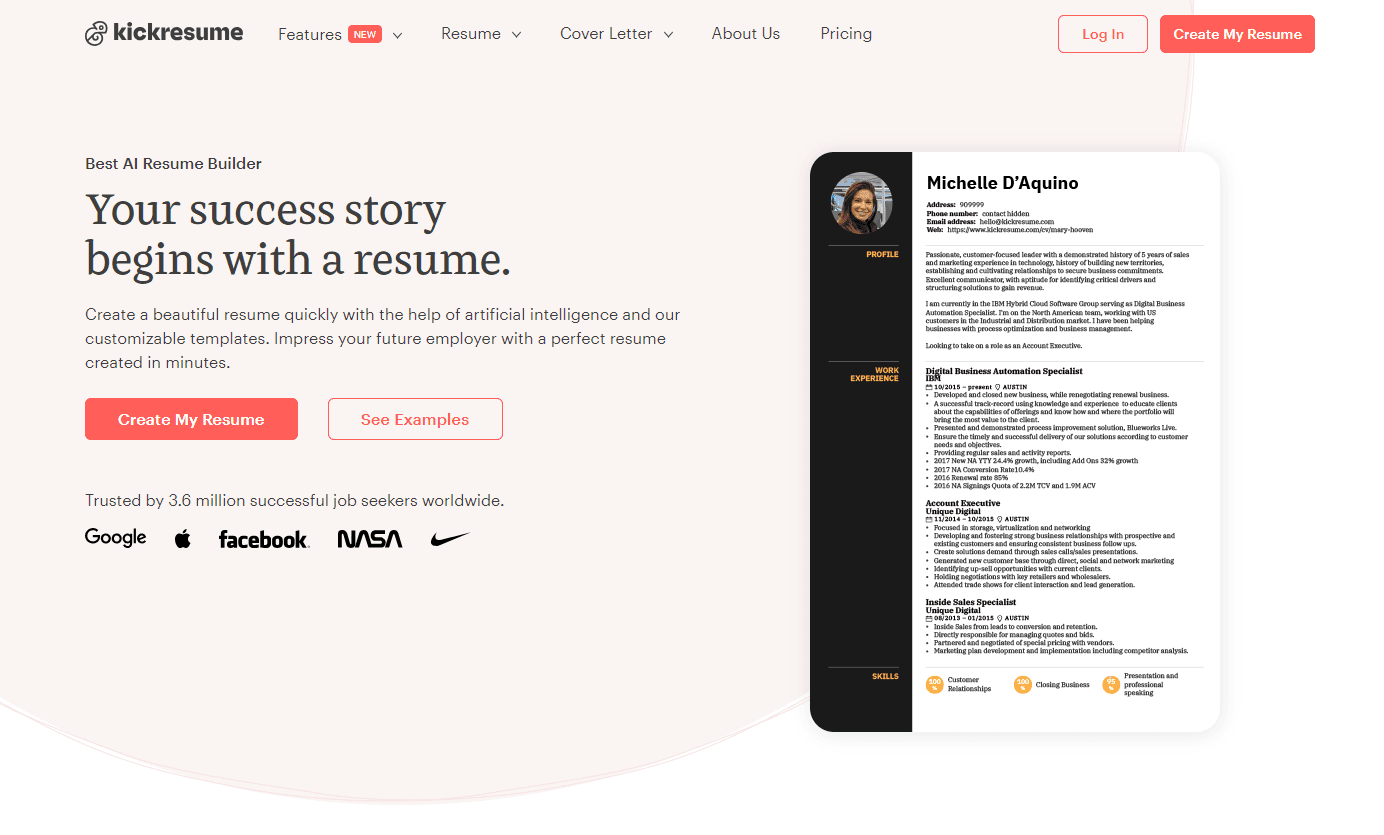 Kickresume helps job seekers build impressive resumes and cover letters. It offers a variety of professional templates that can be easily tailored to fit different job sectors and personal styles. It works with LinkedIn, allowing for easy information transfer to speed up the resume-making process. Kickresume also gives users access to job descriptions, resume writing tips, and career advice, supporting them in their quest for their ideal job.