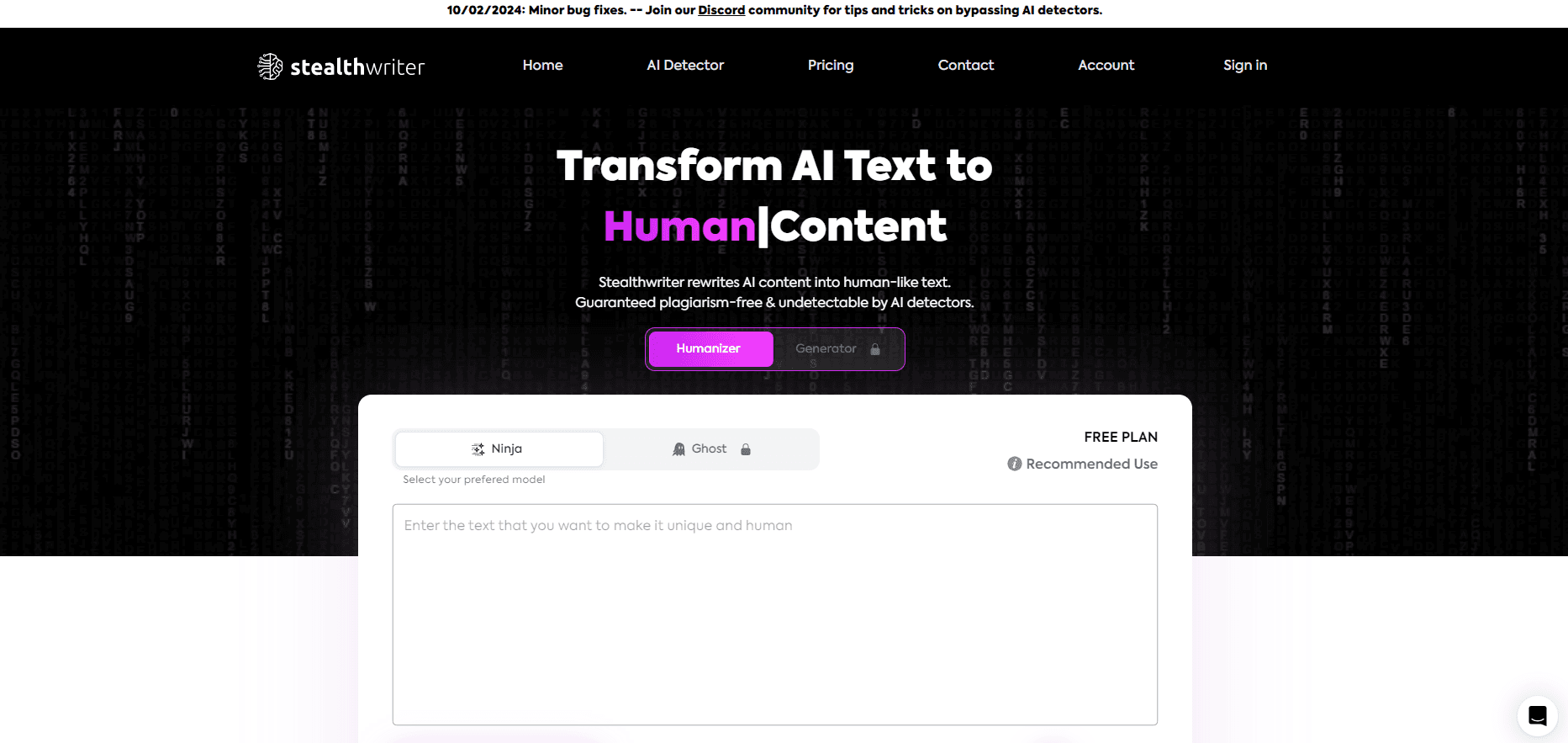 StealthWriter provides distinct written content by entering a few prompts, and generates an that cannot be identified by AI content detection tools. It utilizes advanced algorithms and varying transformation levels to alter the structure, style, and phrasing of content generated by AI.