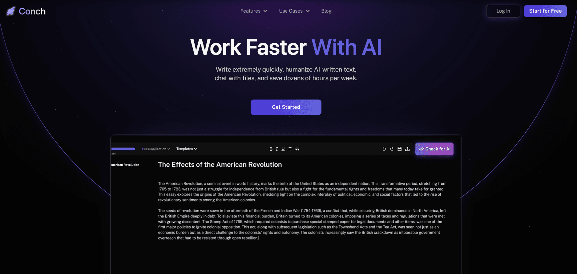 Conch AI is aimed to help users enhance their writing skills and improve their content creation process. It also promises to be able to create text that is undetectable to AI detector platforms It seeks to integrate AI into education and help students write, study, and research effectively.