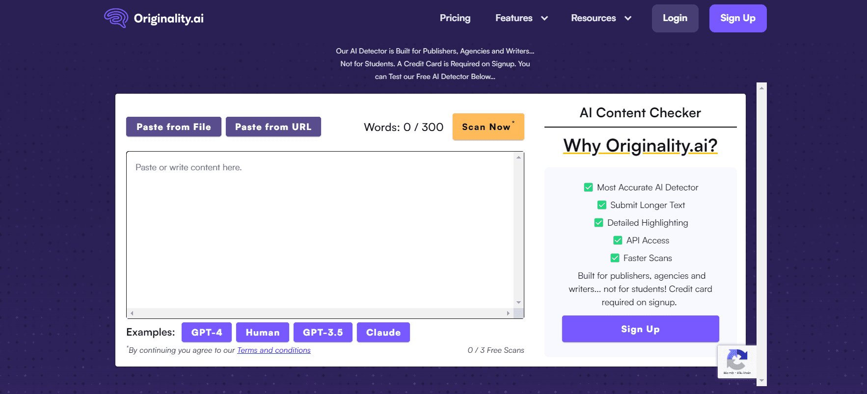 Originality AI is an AI-powered content detection and analysis tool that was built to help writers, content creators, and publishers to screen their content for its originality.