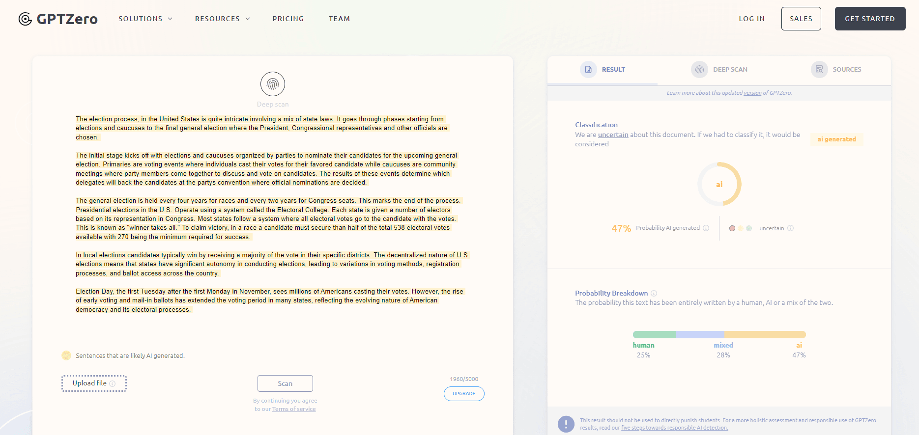 In a recent evaluation, we tested the capabilities of Undetectable AI, a service that claims to produce AI-generated text indistinguishable from human-written content, thus supposedly capable of bypassing detection tools like GPTZero. Contrary to its assertions, the text generated using Undetectable AI was flagged as AI-generated with a 47% AI-written score. This outcome directly challenges the platform's claim to offer a foolproof solution for creating undetectable AI-written content, raising questions about its efficacy and the reliability of its algorithms in mimicking human writing styles closely.