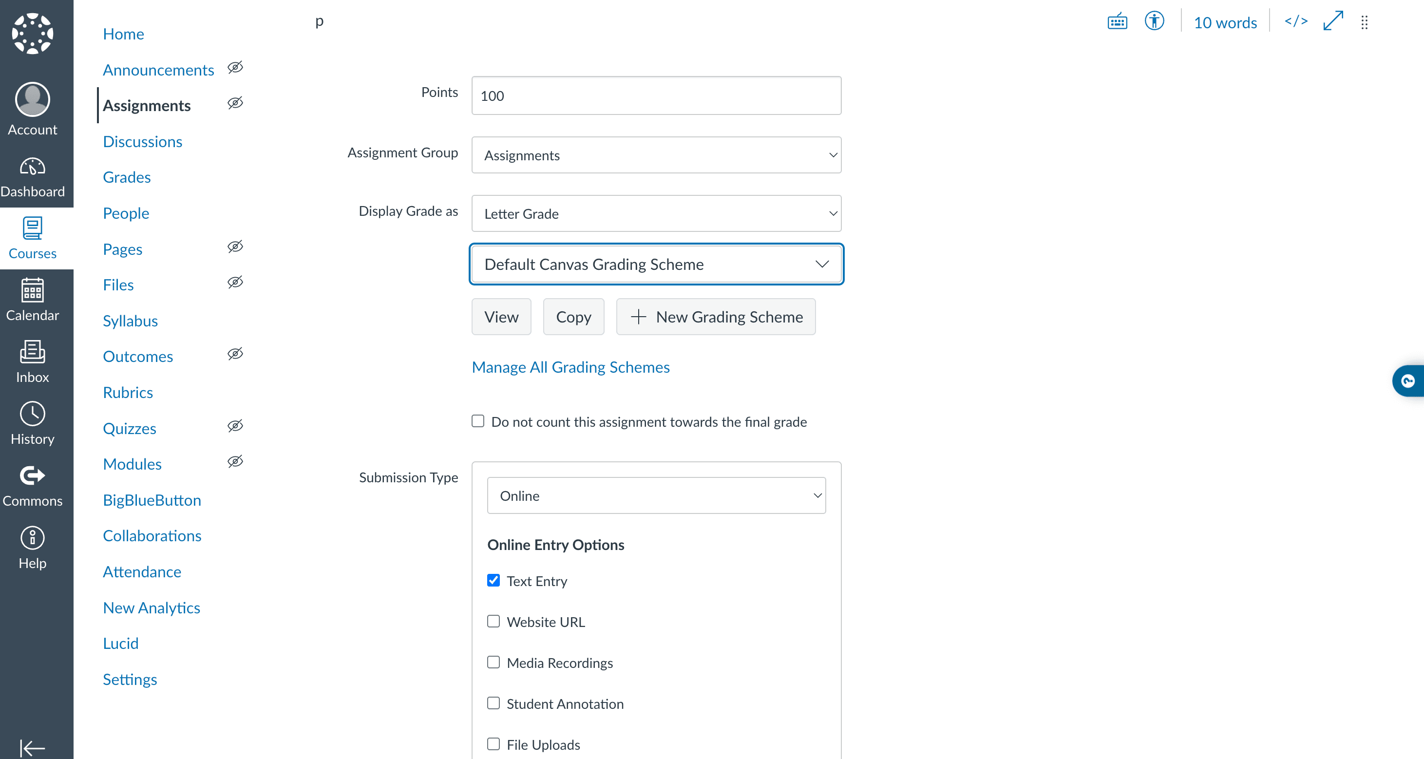 Once The Jock finishes his essay, we can manage his scores and letter grades along with the rest of the class’s in the Canvas gradebook. Teachers can use speedgrader to ease their grading process if they choose.