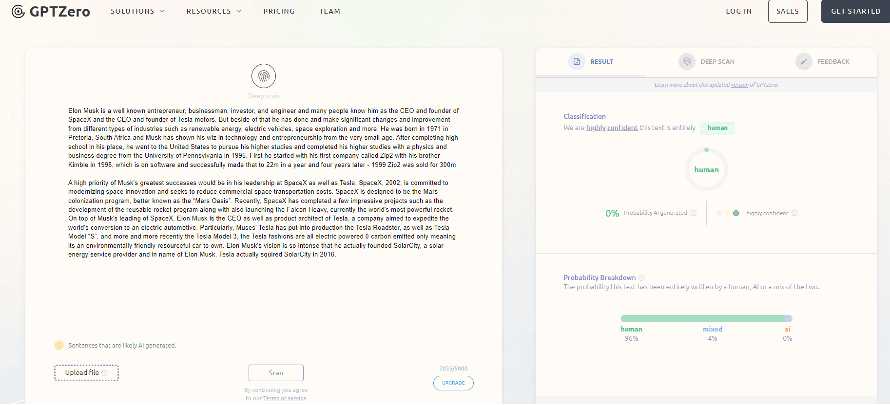 As you can see, the control text was transformed into undetectable content, easily bypassing GPTZero. But our test is not over, let's move to the next AI Detector.