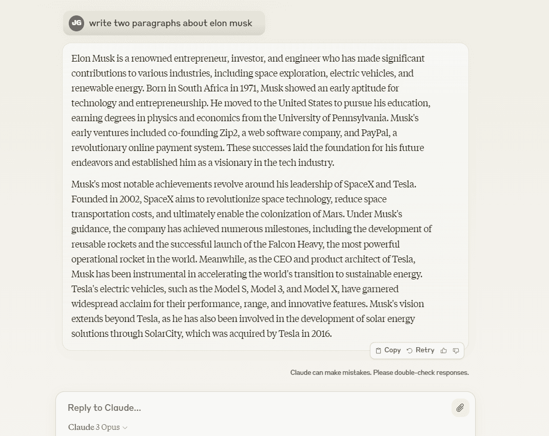 We used the Claude 3 Opus model from Anthropic itself. It was a similar experience to that of ChatGPT.